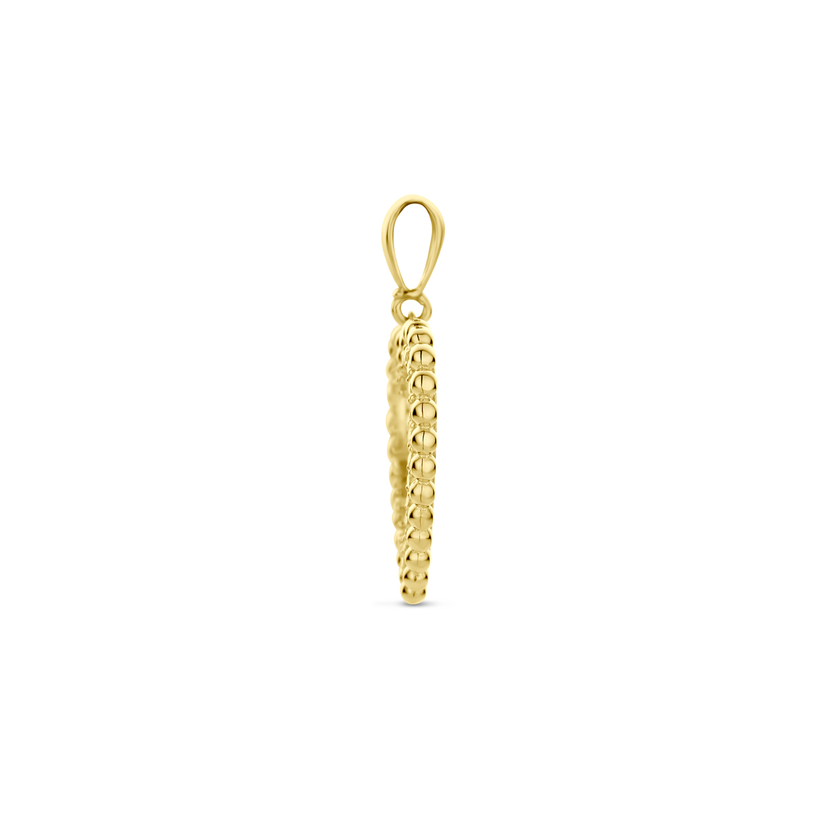 14k Geelgouden hanger uitgevoerd met een hart en zirkonia. De hanger heeft een  totale hoogte van 21.5mm.