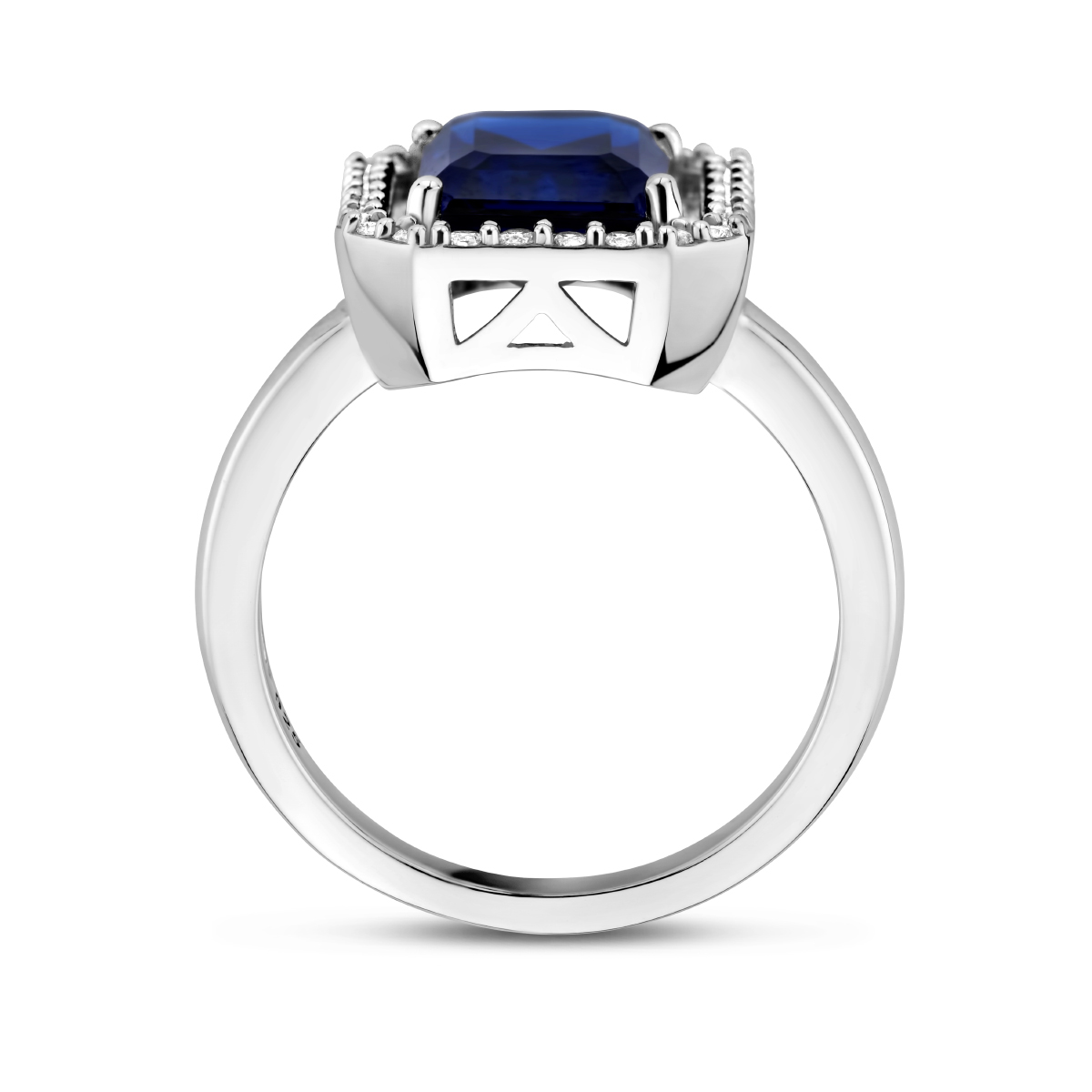 Gerhodineerd 925 zilveren ring uitgevoerd met een synthetische saffier en zirkonia.