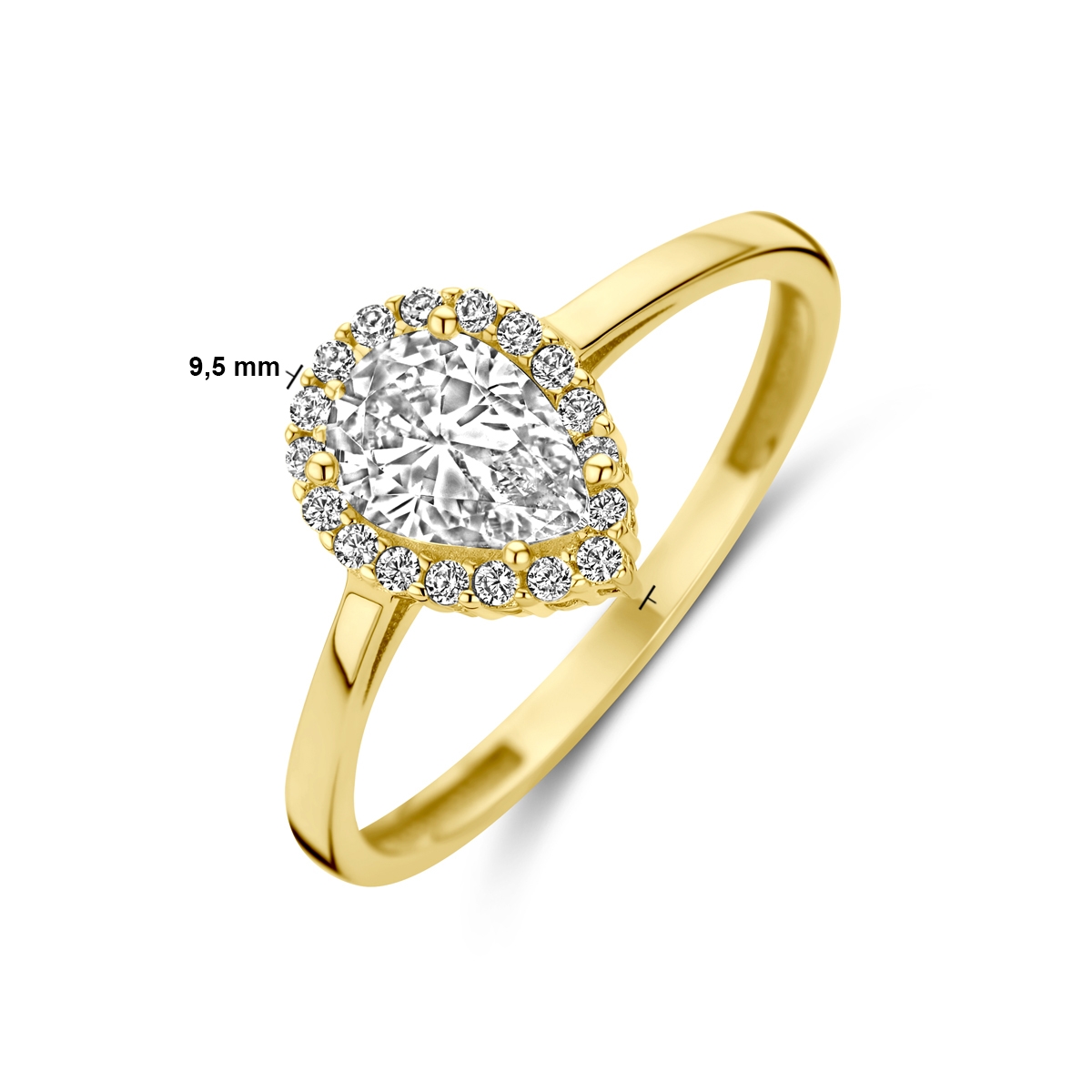 14k Geelgouden ring uitgevoerd met zirkonia.